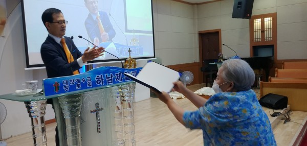 노민주, 송진주 학생에게 장학금을 수여하다.